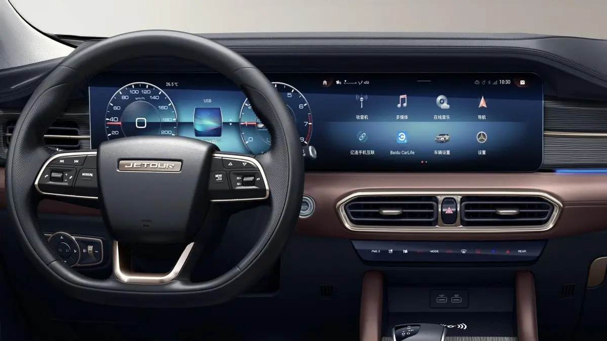 内饰方面,新车中控台区域搭载了三幅式平底方向盘、12.3英寸液晶仪表+12.3英寸中控屏组成的中控双连屏。同时,中控屏下方还布置有触摸式空调控制面板,并且根据动版版本的不同,新车提供机械式或电子换挡机构。同时,还支持360°全景泊车、车道偏离预警和盲区预测预警等安全辅助功能。车内标配皮质座椅,主驾座椅可进行6向调节,副驾座椅可进行4向调节,前后排中央扶手也提供了便利。此外,还配备了手机无线充电、四门车窗一键升降、电动空调和单色氛围灯等舒适配置。