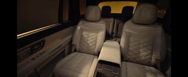 座椅布局上,新车采用2+2+2的六座配置。第二排配备零重力座椅,支持大角度调节,并提供通风、加热、按摩等功能。后排还设有“天空岛”与“行政桥”设计,配备多块互联屏幕。车内第二、三排车窗采用柔性电致变色技术,支持多档隐私与透光调节。