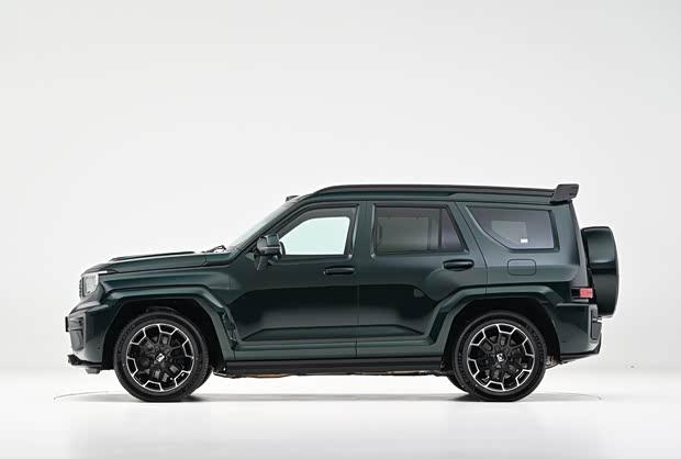 外观设计上,新车采用了名为“麒麟”的设计语言,强调东方美学力量感。前脸部分,多边形进气格栅内部点缀有亮黑色点阵元素,与之搭配的是具备机械旋转开合功能的激光大灯组。该大灯系统内含260颗LED灯珠,可实现动态点亮效果,并将可变激光光源应用于远光灯,最远照射距离可达260米。车尾部分,横向尾灯组、侧向开门结构以及外挂式备胎共同营造出硬朗的视觉风格。此外,车尾还配备了悬浮式扰流板。车身尺寸方面,新车长宽高分别为5105毫米、2061毫米及1985毫米,轴距达到3000毫米。除专属的“敦煌青”车色外,还提供千峰翠、玄武黑、远山灰等多种自然系配色方案。