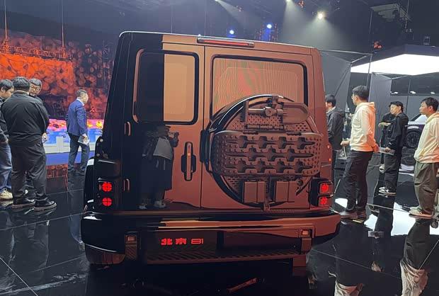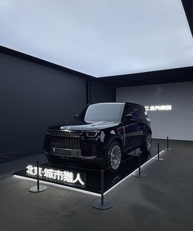 另一款亮相的北京·城市猎人,定位为更大尺寸的中高端SUV。其外观采用“大硬小软”的设计哲学,提供黑化运动风格与镀铬商务风格两种前脸选择。前格栅为多辐条设计,两侧搭配方形灯组与半圆形灯腔。翼子板处加入金属装饰,轮圈提供黑色运动款式或复古饼形设计,并采用悬浮式车顶。车尾配备贯穿式尾灯与视野通透的后窗。
