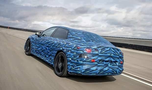 从已发布的原型车图片来看,车辆目前仍覆盖着严密的伪装涂层。前脸部分采用封闭式设计,仅在前包围中部留有散热开口。大灯组轮廓较为狭长,内部光源融入了品牌标志性的三叉星徽元素,点亮后预计将具备较高的辨识度。