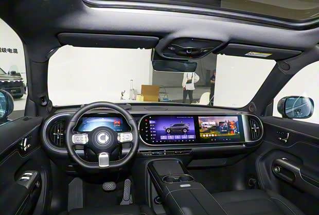 内饰配置方面,新车搭载10.3英寸内嵌式全液晶仪表盘与25.6英寸AR增强型抬头显示系统。三辐式多功能方向盘与悬浮式双13英寸AMOLED超清2.5K联屏构成了富有科技感的驾驶座舱。
