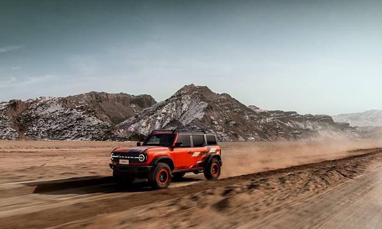 内饰方面,新车延续了“沙丘烈焰”主题风格,座舱细节覆盖烈焰橙同色缝线,空调出风口、扶手、安全带、功能拉手等关键部位均采用同色点缀。中控饰板上通过激光镭雕技术雕刻出赛场方格旗与飞溅沙砾元素,与车身拉花相呼应。座椅采用Dynamica超纤仿麂皮材质,肩部位置点缀有“FORD BRONCO”字标,局部软包材质与沙漠同色,后排座椅经过优化设计,提供更舒适的靠背角度。