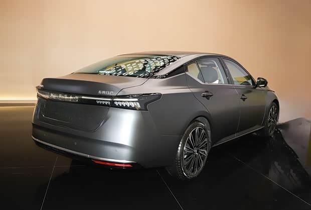 车身侧面延续流畅线条,轴距与车身长度比例接近黄金分割0.618。创新性地将前门把手与腰线对齐设计,配备19英寸钻面光刃多辐轮圈。整车尺寸为4920/1850/1447mm,轴距保持2825mm。车尾采用贯穿式LED尾灯组,中央镶嵌NISSAN标识,两侧配备11颗宝石造型灯珠。新增哑光灰与幻影紫两种车身配色。