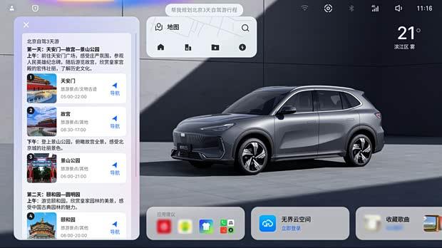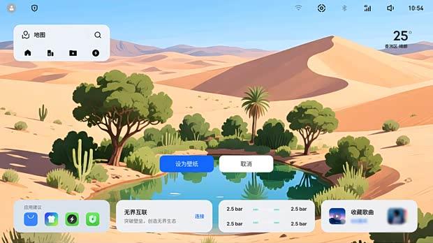 在视觉交互方面,系统新增了10款Alive动态壁纸,涵盖萌宠、生长花卉、车辆姿态等多种主题。这些壁纸支持触控互动与能量可视化,让车辆状态更直观。同时,用户可通过语音助手输入创意,由车机实时生成高清壁纸并一键设置,实现了高度个性化。界面设计也全面更新,图标、控件、色彩与形状均经过调整,采用全圆角风格,整体视觉更为流畅清爽,提升了座舱的审美体验。