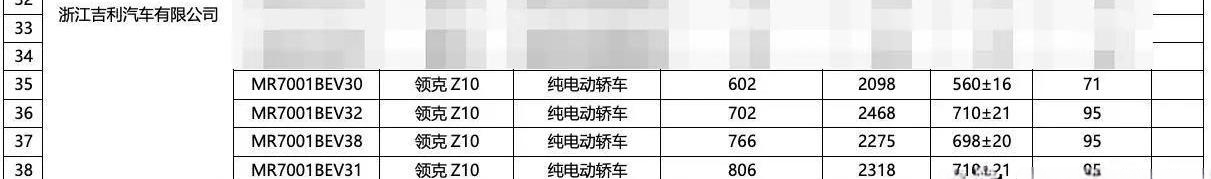 领克Z10提供单电机、双电机两种动力类型。其中,单电机车型提供两种功率版本,最大功率分别为310千瓦和200千瓦;双电机车型前后电机最大功率分别是270千瓦和310千瓦。根据公示的续航数据,领克Z10单电机低功率车型将匹配71千瓦时、95千瓦时两种容量的电池组,综合工况续航里程分别为602公里、766公里。单电机高功率车型搭载95千瓦时电池组,综合工况续航里程为806公里,双电机四驱车型同样搭载95千瓦时电池组,综合工况续航里程为702公里。
