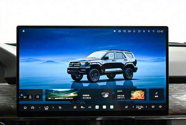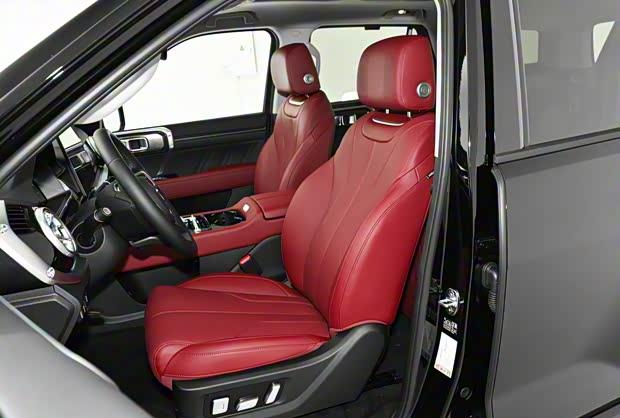内饰方面,新车配备全新方形悬浮式大屏,采用怀挡设计后中控台下部布局焕然一新,配备双无线通风充电面板及金属质感越野控制按键。前排中央扶手内置冷暖箱,车顶取消全景天窗但新增吸顶折叠屏,后排空调出风口屏幕也经过优化升级。
