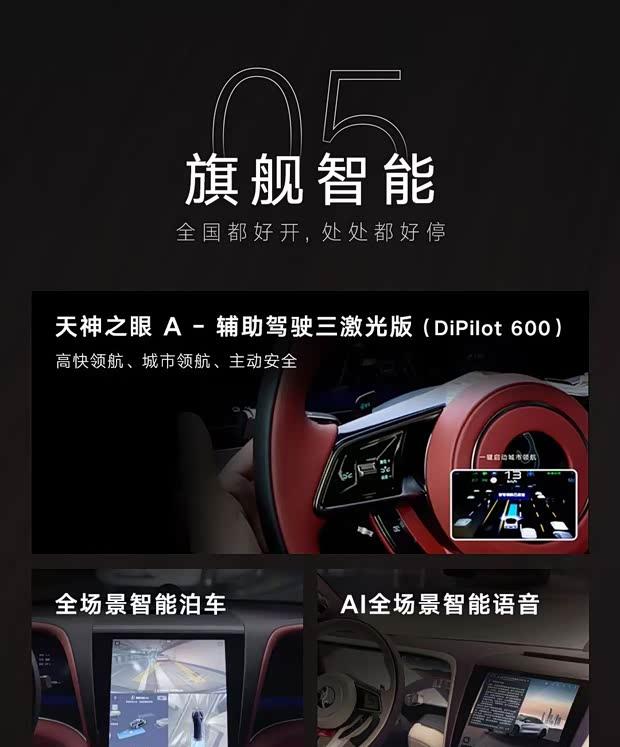 智能驾驶辅助系统搭载了名为“天神之眼A”的高阶智驾方案。该系统基于端到端技术架构,不依赖高精地图即可实现高速领航辅助驾驶,号称交付即可开通,适用全国路况,并具备持续优化能力。