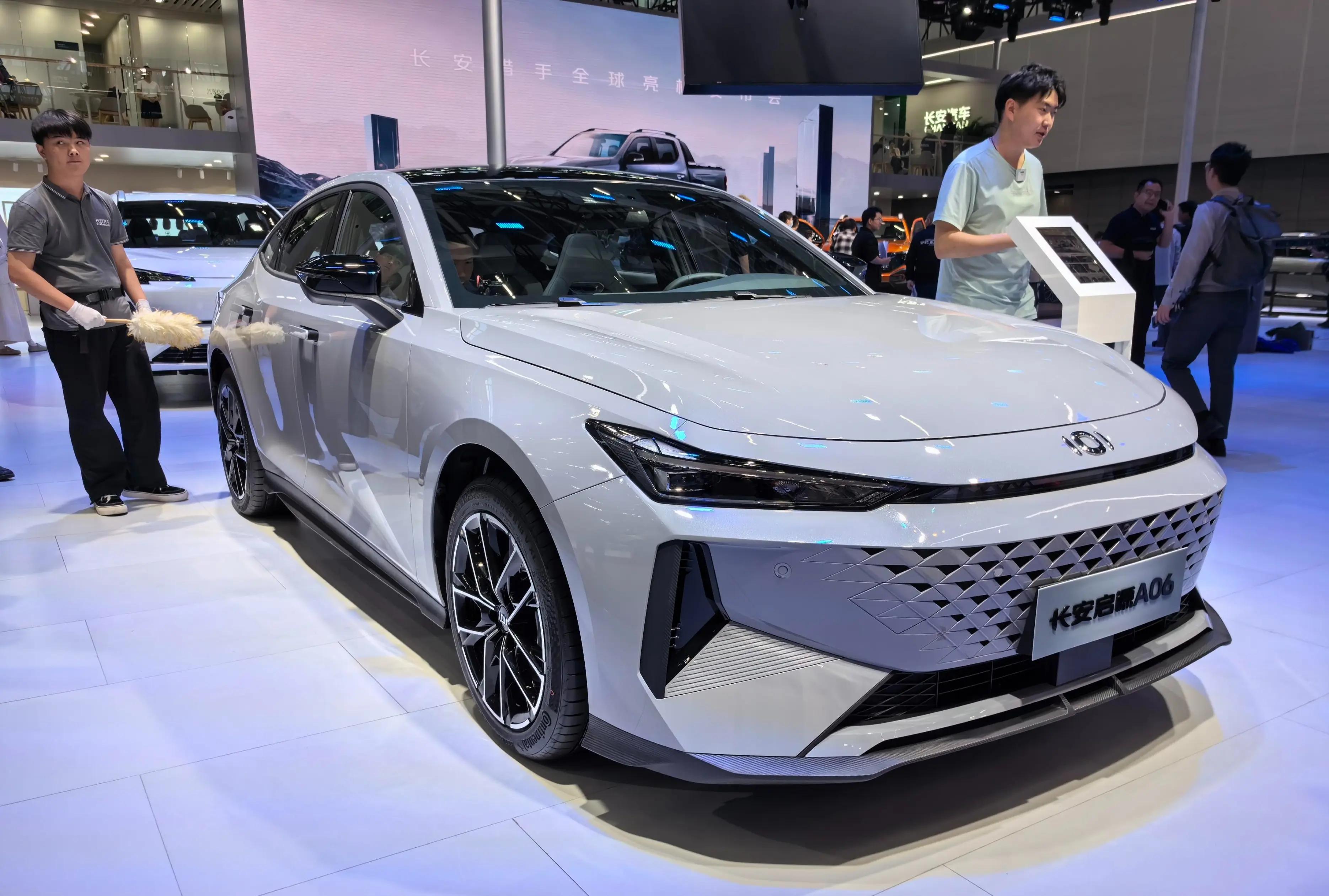 接下来是长安启源的另一款新车A06。预计A06将定位于A05之上,同样采用1.5升发动机组成的插电混动系统。这款车将提供两种容量的电池组,预计近期即将上市销售。外观方面,A06采用了全新的无边界前格栅设计和修长的LED头灯组,以及一些细节上的创新。动力方面,A06搭载了1.5升发动机组成的插电混动系统,发动机最大功率为81千瓦,驱动电机的峰值功率为158千瓦。新车将配备磷酸铁锂电池组,并提供9.07千瓦时和18.99千瓦时两种容量的选择,更多的纯电续航数据还需要官方进一步公布。