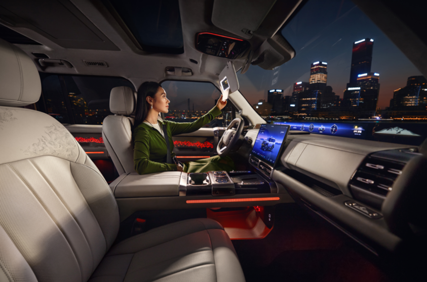 纵横G700通过"智、尊、享"三大维度的先进配置与优质服务,将"移动豪华舱"搬进越野场景。灵感座舱搭载35.4英寸山脉天际屏、15.6英寸中控触控大屏、17.3英寸家庭影院大屏和后排专属8.88英寸空调屏,实现四屏联动。