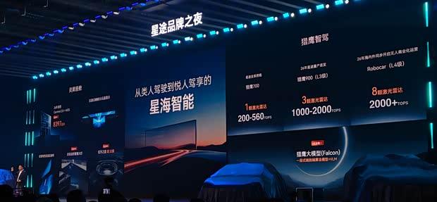 品牌战略层面,星途公布了名为“4+4+X”的产品规划。首个“4”指四大核心车系,涵盖ET系列、ES系列、E0系列及EX系列,分别对应SUV、轿车、旗舰车型与跨界车型;第二个“4”代表四大技术平台,包括M3X火星架构2.0、专属纯电平台、增程平台与混动平台;字母“X”则象征着面向MPV、轿跑等多品类的市场拓展,以期提升品牌整体销量。技术部署上,品牌计划于2026年首发搭载Carmind2.0+AIOS 8397芯片。全系车型将标配猎鹰700系列智能辅助驾驶系统,并配备单颗激光雷达;同年还将量产首发搭载3颗激光雷达的猎鹰900辅助驾驶系统。此外,2026年也将在海内外同步启动L4级别的无人商业化运营,相关车辆将配备8颗激光雷达。音响系统方面,车型将搭载伯牙知音的颂系列32扬声器音响系统。