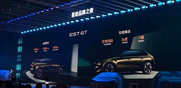 亮相的新车中,星途ES7 GT采用了品牌最新的家族设计语言。前脸为封闭式造型,配有贯穿式LED日间行车灯,狭长大灯组与贯穿灯融为一体。前包围两侧设有纵向通风口与半环绕LED灯组,中间为造型复杂的散热开口,整体风格时尚动感。车身侧面,前后翼子板略微外扩,搭配21英寸五辐半封闭轮圈,面板线条简洁,并采用半隐藏式门把手以降低风阻。车尾部分,D柱线条流畅,配备车顶扰流板与贯穿式尾灯组,后包围采用与车身异色设计,并装有尾部扩散器装饰面板。动力方面,新车预计搭载增程系统与三电机,0-100km/h加速时间为3秒级,提供一键赛道模式。其综合续航里程超过1700公里,并支持1000V兆瓦闪充技术,充电5分钟可增加450公里续航。