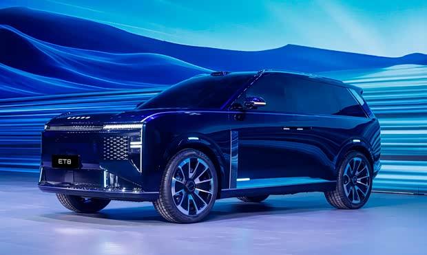定位为中大型SUV的星途ET8,在现有家族设计基础上进行了优化升级,整体造型更显舒展大气。其前脸采用封闭式格栅,内部点缀直瀑式元素,搭配两侧狭长大灯组与纵向导流槽,颇具辨识度。侧面采用新样式轮圈与隐藏式门把手,预计拥有较低风阻系数。平直的车顶线条有助于提升车内头部空间。