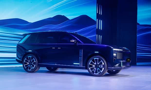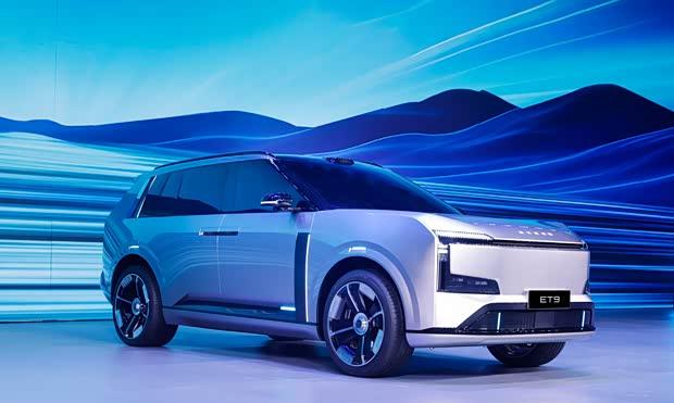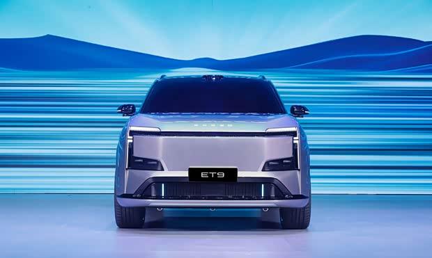 星途ET9则呈现出硬朗的前脸造型,配备分体式大灯与封闭式前脸。发动机盖造型富有肌肉感,中部设有通风口。车顶配备激光雷达。车身侧面线条平直硬朗,内收的车尾设计辨识度高。车辆采用对开式车门与天地门式后备厢开启方式。