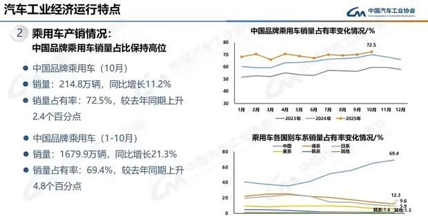 中国汽车设计风格正逐步成为全球审美的重要引领力量。随着本土品牌不断壮大,市场格局已发生深刻变化。最新数据显示,今年10月中国品牌乘用车在国内市场的销售占比达到72.5%,前10个月累计占有率也攀升至69.4%。与此同时,中国汽车出口在11月创下历史新高,单月突破72.8万辆。