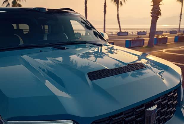 从外观来看,新车采用了专属设计语言,前格栅尺寸进一步扩大,并进行了黑化处理,配合更具张力的前包围进气口,营造出强烈的视觉冲击。发动机舱盖上新增通风口设计,专属蓝色车漆凸显典雅气质。车顶位置集成了一颗激光雷达,预计将支持高阶智能驾驶功能。
