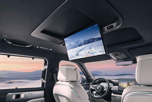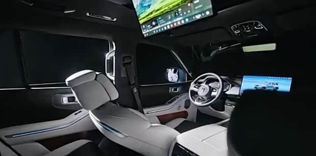 座椅采用双拼色设计,造型宽厚饱满,预计能提供良好的乘坐舒适性。后排配备可翻折吸顶屏,同时提供天窗及二排隐私帘等配置,兼顾娱乐性与私密性。