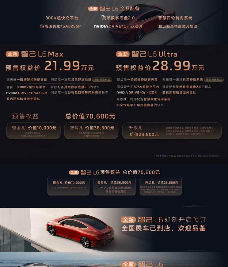 智己汽车将在5月13日推出新款L6,预售权益价21.99万起。新车升级了激光雷达设计和ISC智慧灯语系统,搭载IM AD3.0智驾系统。全系标配800V高压平台和21000rpm电机,CLTC续航超800公里。底盘方面采用灵蜥数字底盘技术,配备后轮转向和爆胎稳定控制系统。