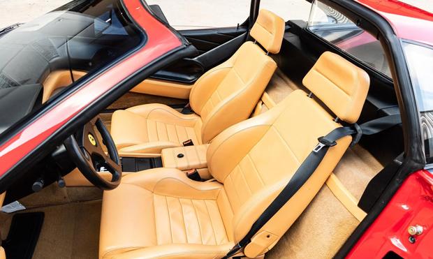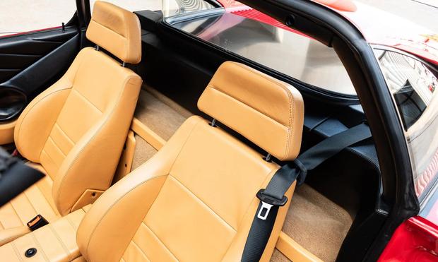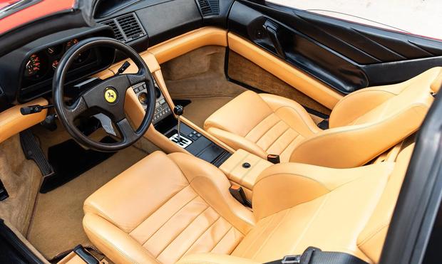 这辆诞生于1989年的跑车最初交付至美国加州,在总计4228辆的同款车型中堪称幸运儿。历经三十六载时光,前任车主仅行驶了13799英里,并始终精心维护。该车采用标志性的Rosso Corsa红色漆面,搭配可拆卸黑色顶篷,其造型由宾尼法利纳设计总监莱昂纳多·菲奥拉万蒂亲自操刀,更是恩佐·法拉利亲自指导开发的最后一款V8发动机车型。