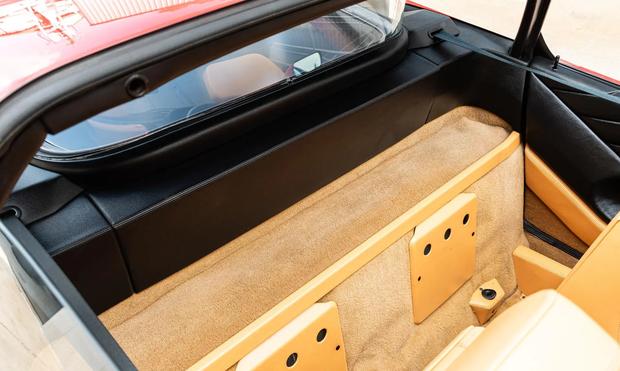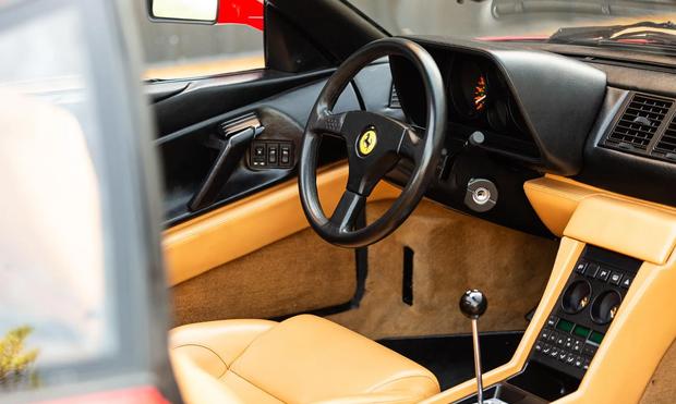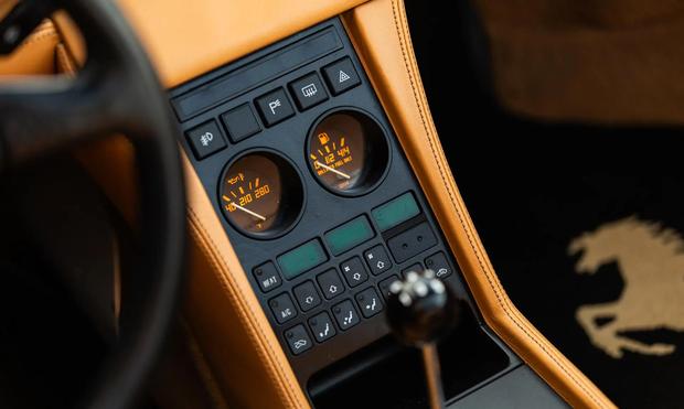 内饰选用米色康诺利真皮包裹座椅、中控台与门板,配备独具特色的狗腿式换挡机构。虽然空调、电动车窗、后窗除雾及隐藏式卡带音响等配置以当今标准略显朴素,但完美呈现了八十年代末意大利跑车的设计精髓。Veglia Borletti仪表盘组彰显机械美学,时速表极速标记为200英里,配合机油压力表、冷却液温度计与7500转红线转速表共同构筑了经典欧系跑车的驾驶氛围。