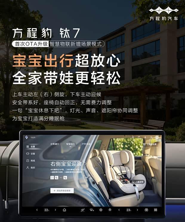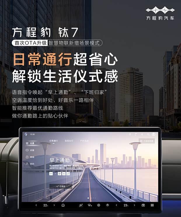 近日,方程豹钛7车型迎来首次OTA升级,多项功能得到优化与新增。据悉,本次升级计划自12月3日起逐步向用户推送,整个升级过程预计耗时约48分钟,用户可通过手机应用或车辆中控系统完成操作。