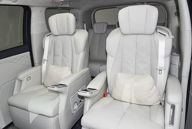 在乘坐舒适性上,该车采用2+2+3七座布局,重点聚焦座舱的洁净与舒适体验。其二排座椅支持零重力模式,并可通过电动调节一键切换三座、四座及六座模式。此外,车辆还配备BOSE音响、支持-10℃至50℃温控的冷暖箱以及五恒健康座舱系统。底盘方面搭载空气悬架,在超级迎宾模式下可降低车身60毫米,配合较低的门槛高度,提升上下车便利性。后备厢容积可在630升至2056升之间灵活调整。
