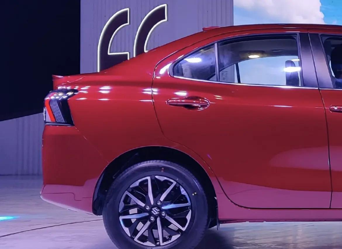 车尾部分,新一代 Dzire 的尾部有着上翘造型,后备厢盖边缘配有小型扰流板,后保险杠的超声波雷达显示新车会增添倒车雷达功能。根据现场发布的实车,新一代 Dzire 配备有双色铝合金轮辋,尺寸为 16 英寸,匹配 195/55 R16 规格轮胎,而现款 Dzire 的轮胎规格是 185/65 R15,预计新一代 Dzire 的低配版会配备钢制轮辋。