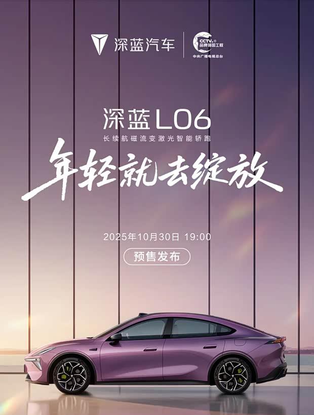 深蓝品牌旗下全新中型轿车L06将于10月30日启动预售环节。该车型提供增程式与纯电动两种动力选择,预计于本年度第四季度正式投放市场。