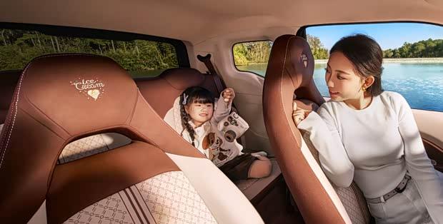 内饰部分,女王版采用棕色系设计,配合类绒布材质,营造出复古而时尚的氛围。座椅还采用了专属的刺绣与花纹样式。
