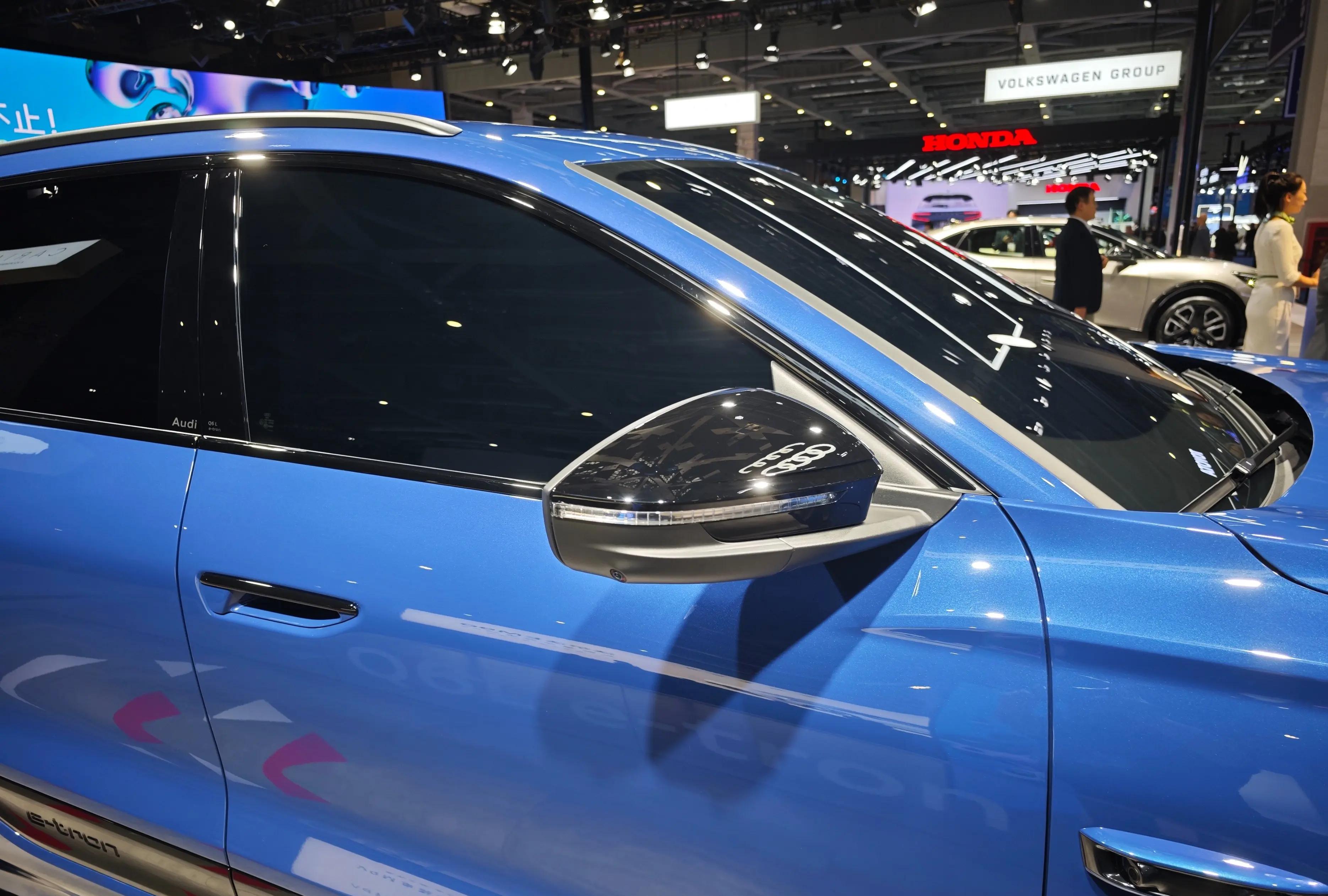 这款奥迪 Q6L e-tron 是奥迪基于 PPE 豪华纯电动平台打造的首款车型。其新车保持了奥迪电动化产品的家族式设计风格,车头有大面积封闭式面板呈现八边形轮廓,头灯组为分体式设计,采用阵式 LED 大灯技术以及可变换“灯光签名”图形的数字式 LED 日间行车灯,该数字灯光签名由 12 个可调节亮度的灯光单元通过算法生成。车侧线条也延续了奥迪过往车型风格,前后翼子板处有隆起的肩线,与车门下方黑色装饰一同增强了视觉力量感,车辆配备了内嵌式门把手以及 21 英寸半封闭式轮辋,还将为中国市场提供专属车身配色,“丁香灰”便是其中之一。