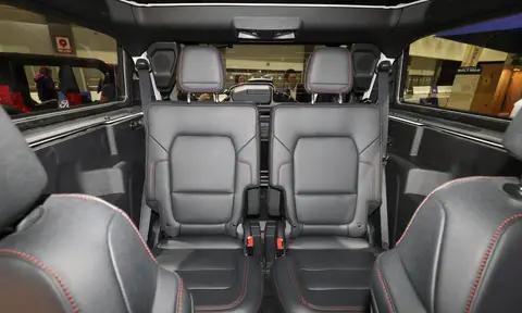 福特 Bronco Stroppe 特别版的命名是为致敬著名赛车手比尔·斯特罗普,他曾两次夺得 Baja 1000 比赛。其外观上,整车呈现橙红色和白色的涂装风格,中网上的“BRONCO”标识、拖车钩等用红色点缀,车顶部分还有阿特拉斯蓝装饰。该车尾门为哑光黑色涂装,外挂全尺寸备胎且有黑色“烈马”标识,还搭载了固特异 Territory RT 全地形轮胎。内饰方面,福特 Bronco Stroppe 特别版整体设计风格与福特 Bronco Raptor 高度一致,配备“Stroppe”专属铭牌,中控台等细节处有红色线条修饰。