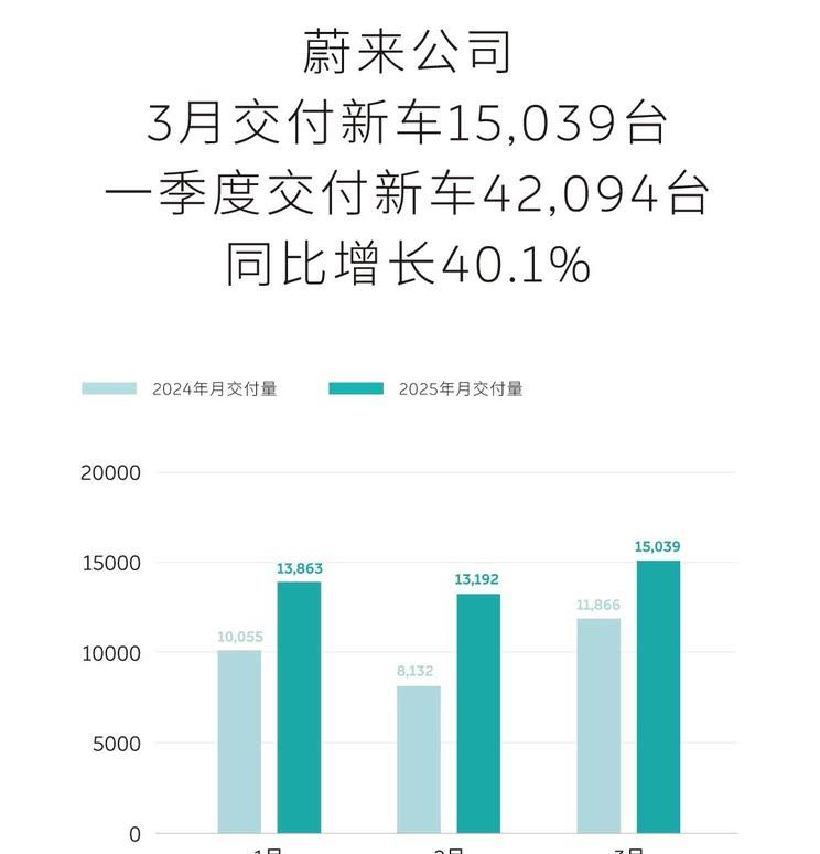 蔚来方面,3月整体交付量为15039台,同比增长26.7%。其中主品牌交付10219台,乐道品牌贡献4820台。第一季度累计交付42094台新车,同比增幅达40.1%。分析人士指出,蔚来订单量的提升与其4月推出的促销活动密切相关。