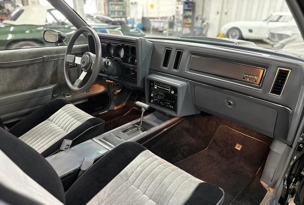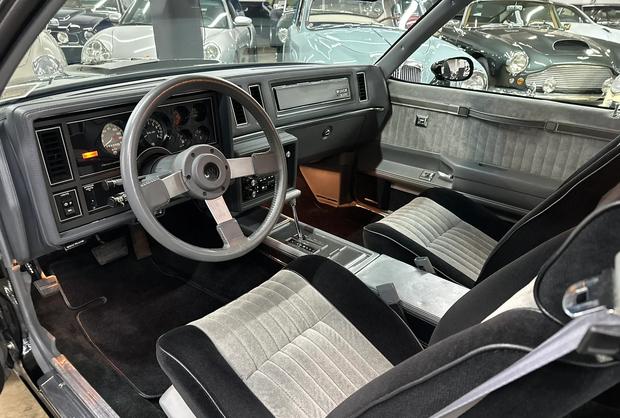 GNX与普通版GN的差异体现在多处设计细节:翼子板增设鱼鳃式散热孔,轮拱采用更立体的复合造型,车尾配备三片式扰流板并镶嵌专属徽标。该车配备的16英寸交叉花边双色轮圈至今保持完好,最初由加州长滩经销商作为展车陈列,直至2020年才转入私人收藏。