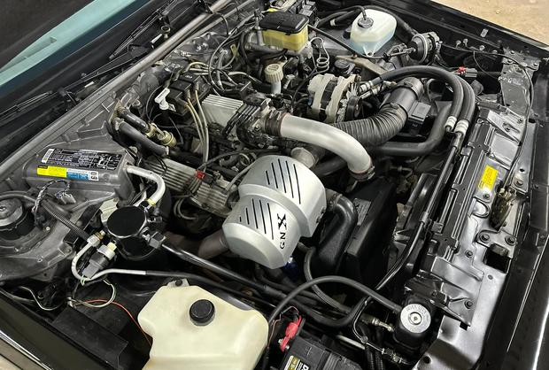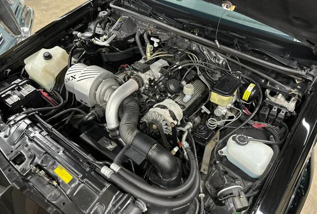 动力系统方面,盖瑞特T3涡轮增压器外覆GNX标识金属护罩,机舱隔音棉同样绣有Turbo 6字样。经过ASC/迈凯伦调校的3.8升V6涡轮增压发动机可输出276马力,在八十年代美国性能车领域堪称翘楚。