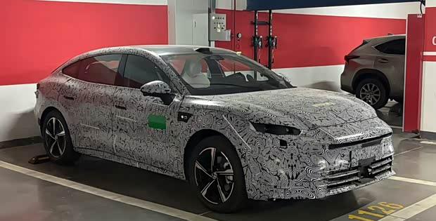 从曝光的图片来看,新车前脸部分发动机舱轮廓饱满厚实,配有大尺寸进气格栅,两侧头灯造型锐利醒目。车顶位置可见激光雷达装置,暗示其可能搭载高阶智能驾驶辅助系统。车身侧面线条流畅舒展,采用半隐藏式门把手设计,轴距表现较为突出,整体姿态修长。尾部为溜背造型,预计将保留一体式开启后备厢设计,尾灯组为贯穿式布局,不过测试车上尚未安装量产版本灯组。