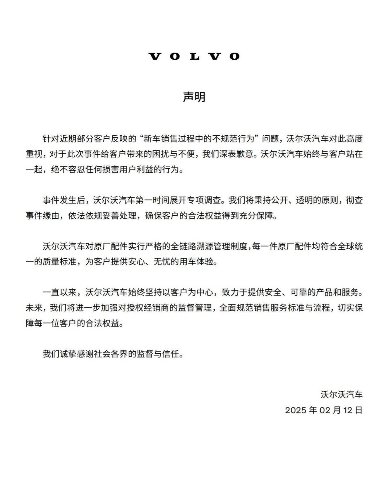 面对这一丑闻,沃尔沃官方于2月12日发表声明,表示高度重视此事,并对给客户带来的困扰与不便表示歉意。然而,声明中并未立即提出具体的解决方案,而是将责任归咎于部分经销商的行为。这种态度让消费者感到不满,他们更关心的是如何获得合理的补偿。