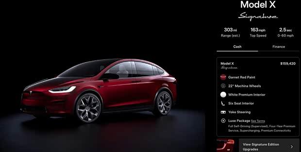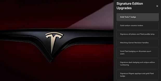 据悉,签名版车型仅限收到专属邮件邀请的客户购买,Model S限量250台,Model X仅100台,统一售价为159420美元。