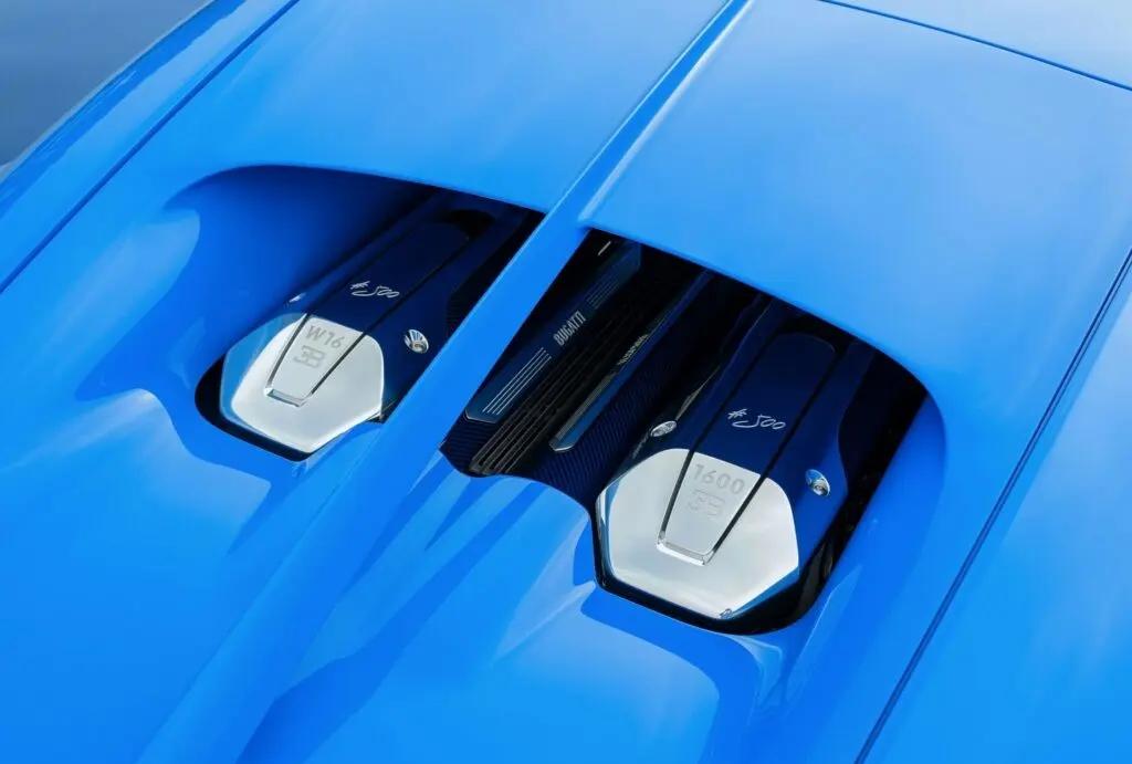 内饰同样升级为蓝色调,多处使用真皮包裹,搭配哑光蓝色碳纤维饰板。动力部分搭载8.0升四涡轮增压W16发动机,最大功率1600马力,传动系统匹配7速双离合变速箱和四驱系统。0-100公里/小时的加速时间为2.45秒,极速被电控系统限制在440公里/小时。