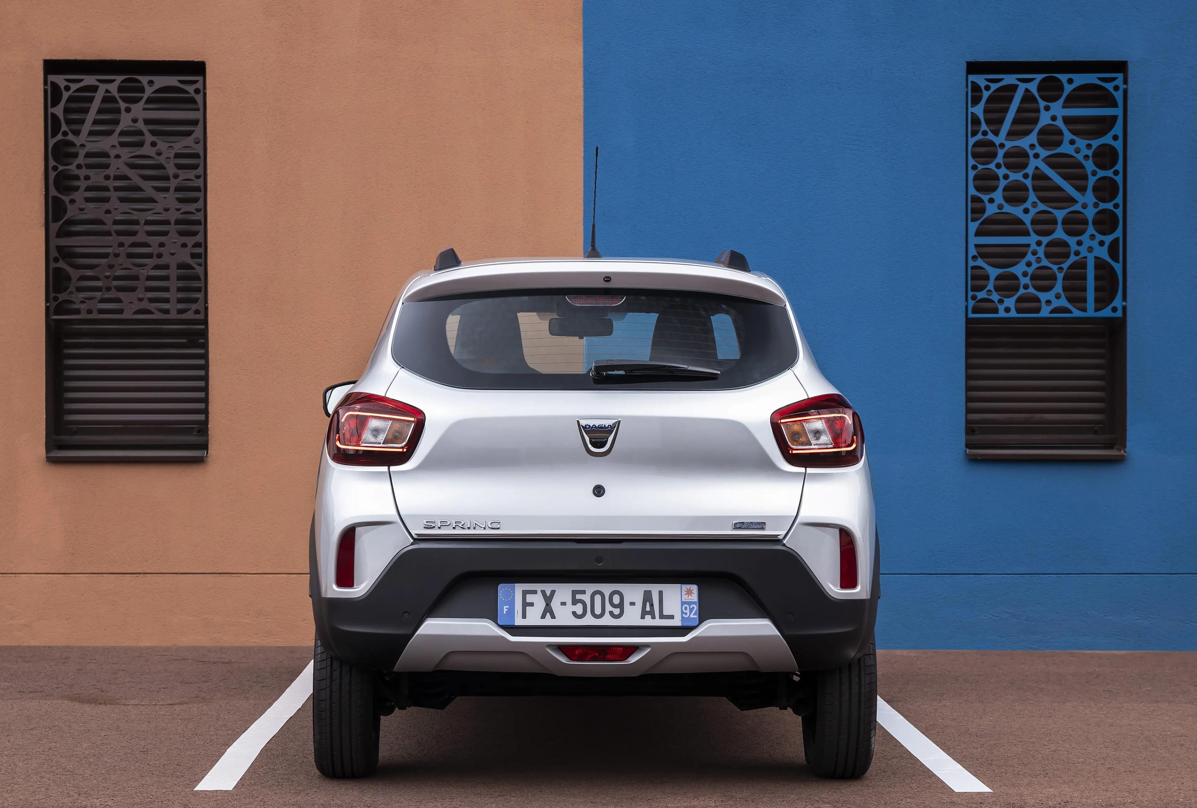 车尾部分变化显著,两侧尾灯造型鲜明,中央配有贯穿饰板和"DACIA"字母标识,下方后包围也可以时尚装饰。新款Dacia Spring提供两种功率的驱动电机,容量为26.8千瓦时的动力电池,综合工况续航里程220公里,快充模式下电量充至80%需要45分钟,慢充状态下从20%充至100%需要11个小时。此外,该车还支持外放电功能。
