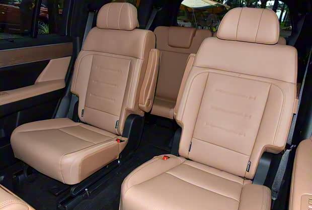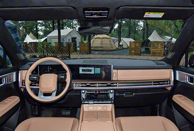 进入车内,新车配备双12.3英寸一体式屏幕和HUD抬头显示系统,并提供两个手机无线充电板及扶手箱紫外线消毒等实用功能。座椅布局方面,用户可根据需求选择5座、6座或7座版本。座椅采用Nappa真皮材质包裹,前排具备加热、通风及侧向支撑功能;第二排配备电动调节、老板键、一键放倒与加热功能;第三排座椅则可完全放平,进一步扩展后备厢储物空间。