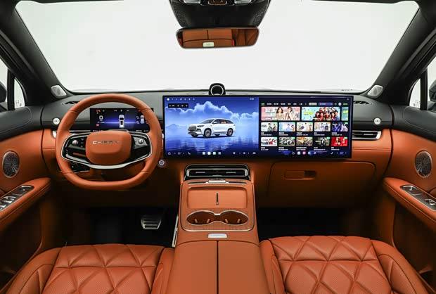 进入车内,新款瑞虎9的内饰进行了重新设计。中控台配备了尺寸更大的双联屏,涵盖中控与副驾驶前方区域。方向盘采用全新样式,换挡机构改为怀挡设计,空调出风口也更新为全新造型。座椅面料升级为菱形缝线装饰,更具豪华感。车门处增加了扬声器数量,电动座椅调节按键被移至座椅侧方,操作更为便捷。此外,新车还专门为副驾驶提供了带有腿托等舒适配置的“女王副驾”功能。