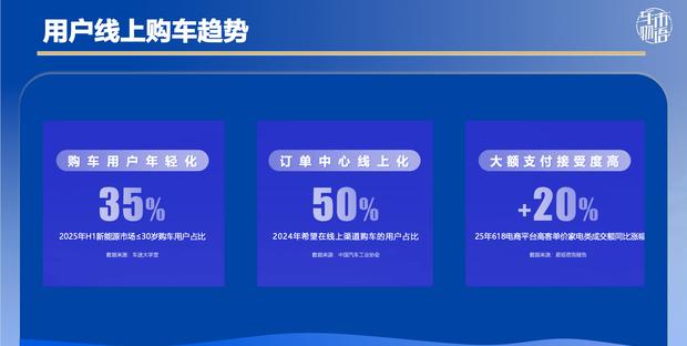 行业环境的变化为跨界企业创造了条件。随着汽车向智能化终端演进,用户关注点从交通工具属性向智能终端属性转移,这恰好是家电和电商平台的优势领域。此外,汽车消费呈现年轻化趋势,2025年上半年三分之一的购车者年龄在30岁以下,线上购车意愿显著提升。数字化技术和AI的应用,也让用户画像精准度和服务便捷度得到大幅提升。