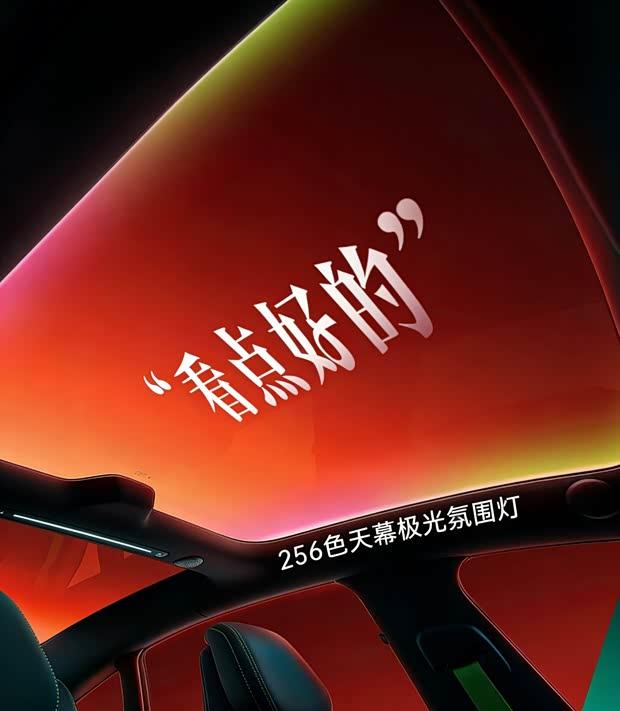 内饰方面,新车延续环抱式座舱布局,配备双辐式多功能方向盘与悬浮式中控大屏,科技氛围突出。根据官方信息,该车还将搭载包含19枚扬声器的音响系统、零重力运动云绒座椅以及支持256色调节的天幕极光氛围灯。