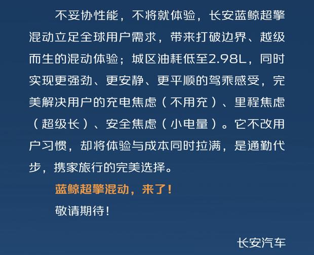 长安发布蓝鲸超擎混动系统 城区油耗低至2.98L