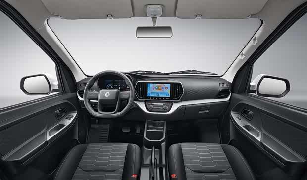 进入车内,乘用化环抱式座舱搭配三辐式方向盘与怀挡设计,兼顾操作便利性与整体美感。9英寸中控屏不仅提升了科技氛围,还集成手机互联与远程车辆控制功能,为日常使用带来更多便捷。座椅布局提供2座、5座、6座及7座多种选择,用户可根据货运或客货两用需求灵活调整。