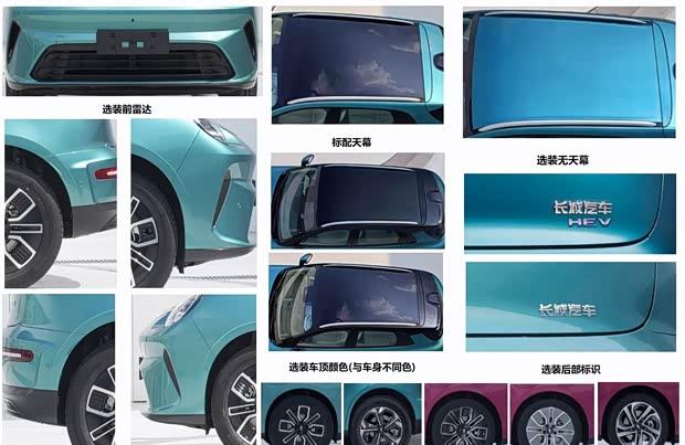 从申报图来看,混动版与燃油版车型延续了欧拉5纯电版的外观风格与车身尺寸,整体造型兼具复古与时尚感,辨识度较高。车身长宽高分别为4471mm、1833mm、1641mm,轴距达到2720mm,定位为紧凑型SUV,采用五座布局,能够较好地满足家庭日常出行对空间的需求。在配置方面,新车提供无天幕、多种轮圈样式及车顶颜色等选装项,并标配18英寸轮圈。