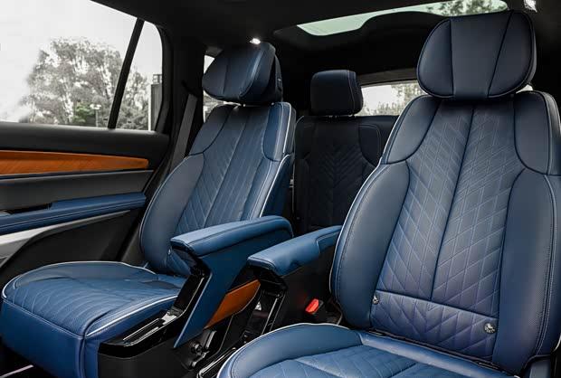在细节配置上,凯威德配备了193mm的离地间隙,并搭载22英寸六芒星熏黑轮圈,搭配Brembo定制的六活塞制动卡钳和295mm宽胎。此外,它还内置了舱内隐藏式激光雷达,配合Momenta高阶辅助驾驶系统。