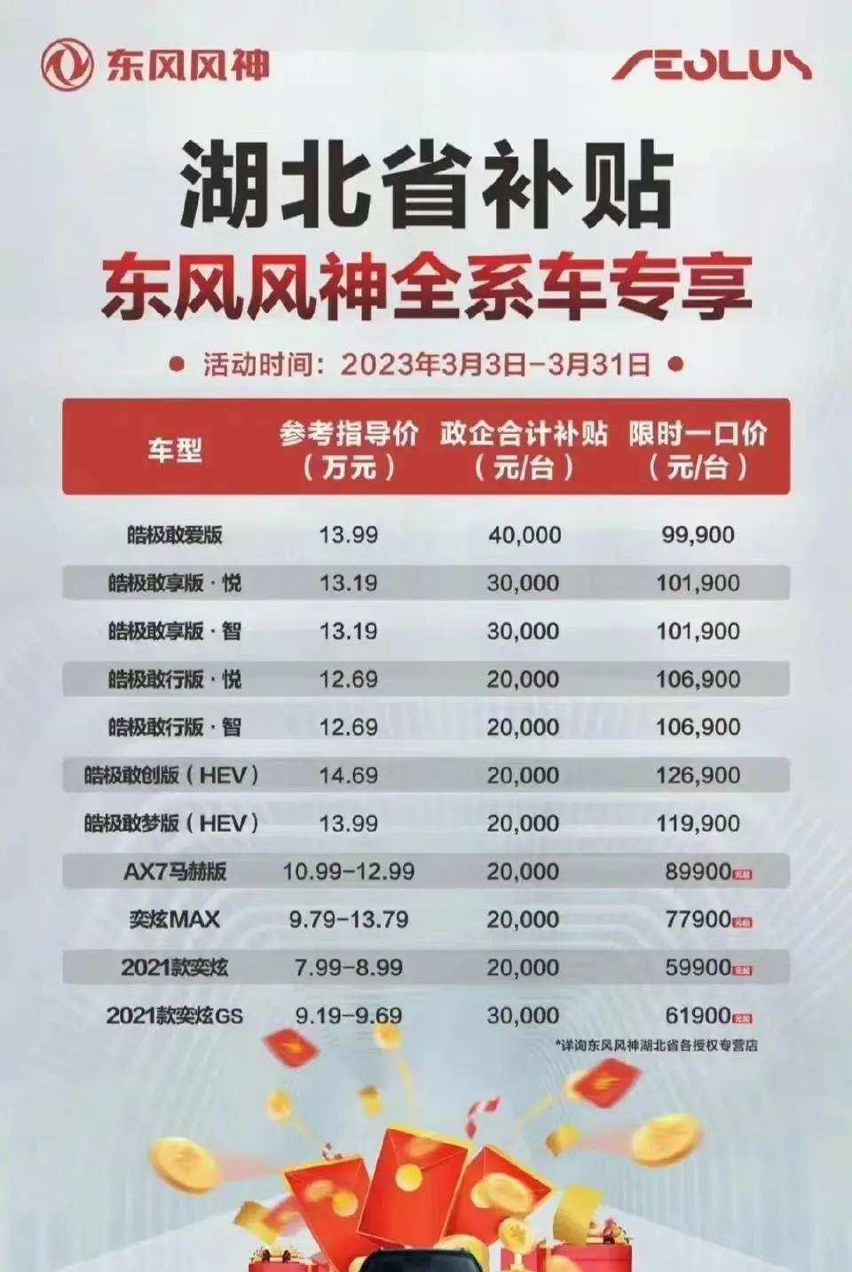 东风风神全系车专享湖北省补贴