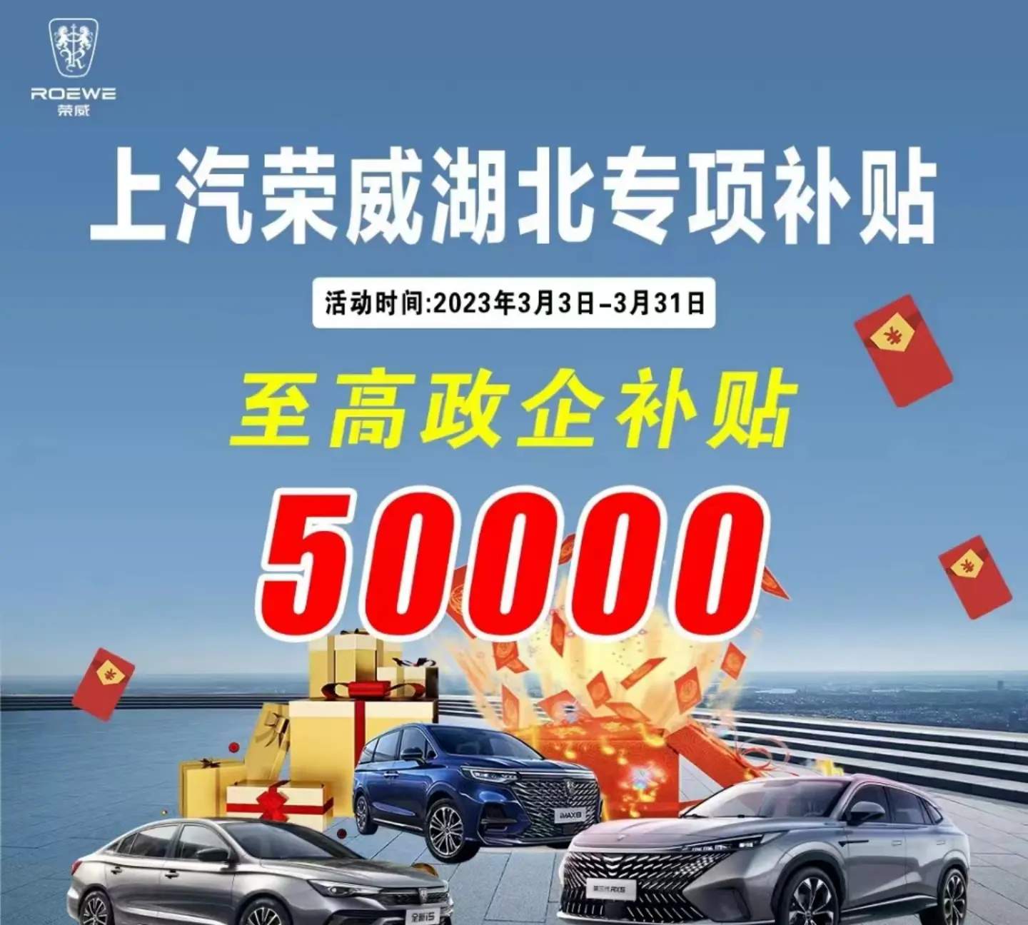 除了东风汽车集团,近日,上汽荣威也发布了湖北专项补贴政策,主力在售车型政企合计综合补贴至高可达5万元!专项补贴优惠活动仅限2023年3月3日至3月31日。