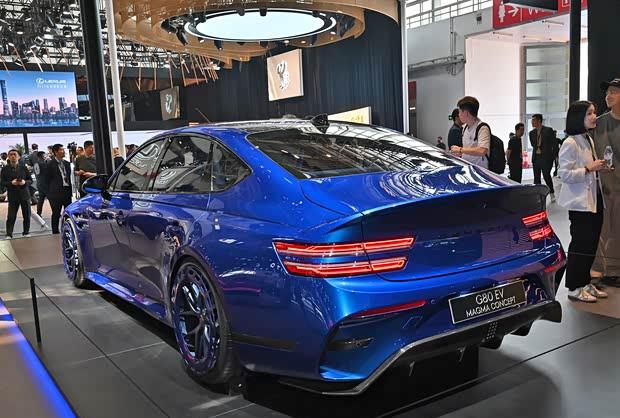 此前,捷尼赛思曾在国内车展亮相纯电动版G80 Magma概念车。该车型同样搭载了大量碳纤维空气动力学套件,采用宽体设计与长轴距纯电平台,并配备专属蓝色车漆及21英寸空气动力学轮圈。内饰中一块27英寸弧形OLED屏幕取代了传统双屏布局,科技感显著提升。燃油版车型预计因法规限制难以引入国内市场,而纯电动版本未来是否有机会引进,仍有待观察。